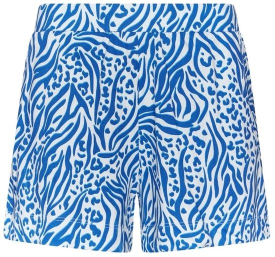 De short is uitgevoerd in een bijpassende blauwe animal print die speels terugkomt in het hart op de top. Dankzij de elastische tailleband zit de broek heerlijk comfortabel en de steekzakken maken deze shortama extra praktisch.